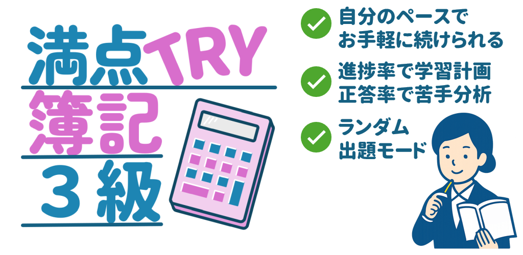 ビジネス学習アプリ「満点TRY簿記3級」